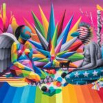 • Características: Geometría multicolor, figuras surrealistas, crítica social