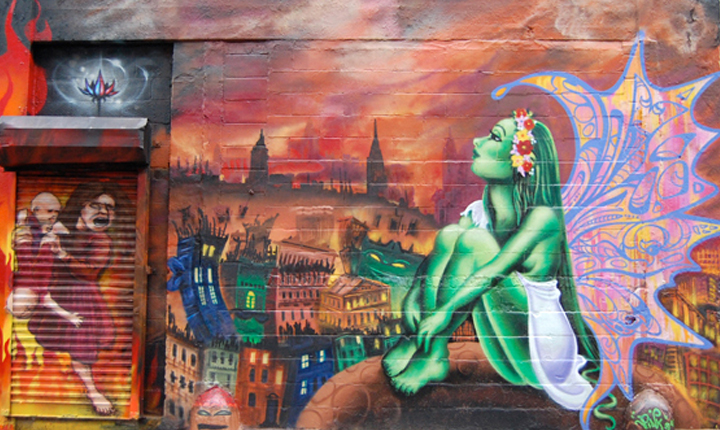 • Particularidad: Reconocido por intervenir fachadas enteras con un estilo único e inconfundible