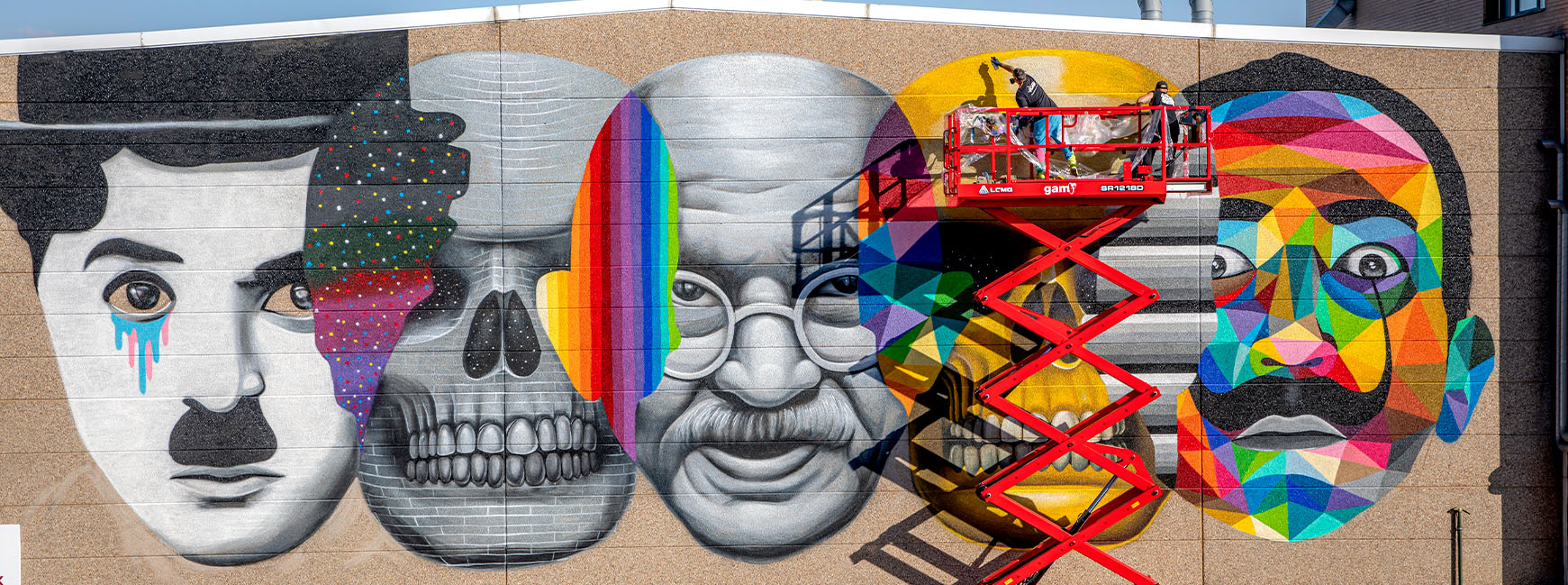 • Particularidad: Usa fotos encontradas para crear rostros llenos de vida y energía en el espacio público